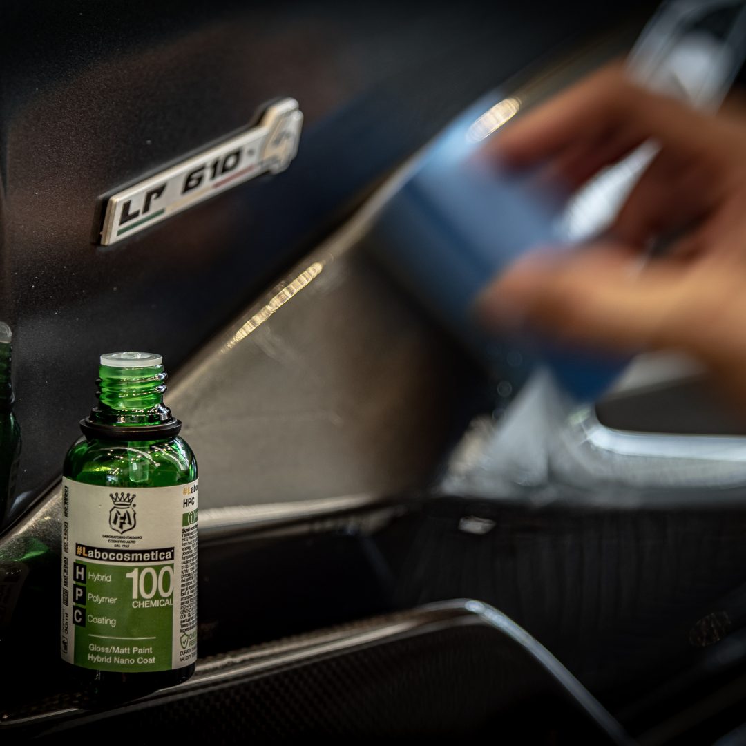 #BLINDO, Labocosmetica’s revolutionary coating concept that redefines surface protection. This ultra-fine, transparent layer not only enhances hydrophobic properties but also stands as a bastion against climatic adversities and road wear. Its core innovation lies in a complex resin featuring a siloxane core within a polyhedral 3D cage structure, ensuring superior stratification, thermal resistance, and unparalleled abrasion durability.